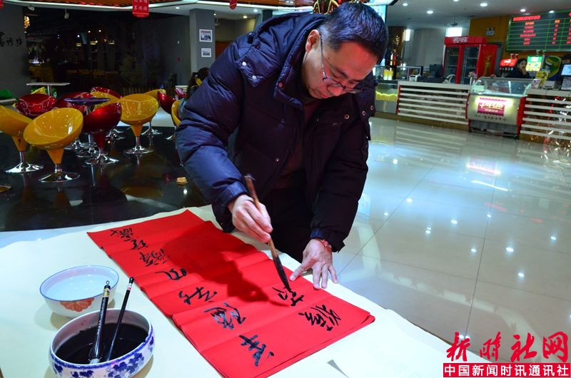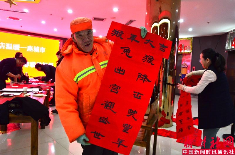 (本社记者:赵志伟讯)2016年2月5日下午,山西省汾阳市举办“一家书店温暖一座城市, 为环卫工人书写春联送祝福”活动。