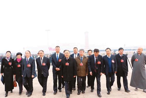 3月3日,驻晋全国政协委员步入人民大会堂,出席全国政协十二届四次会议开幕大会。 田建兵 徐建斌摄