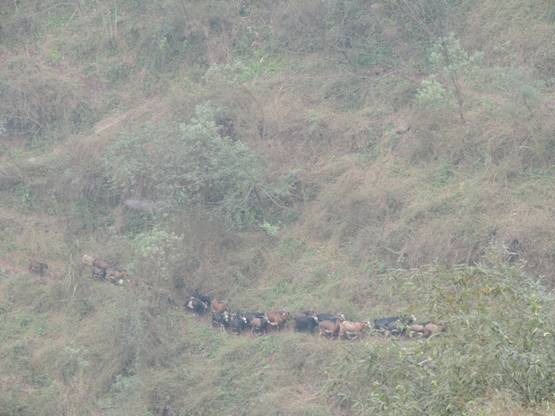 有了压力才有动力,截止2016年春节,李庭亮放养的黑山羊除了购买的优良品种加上自己家里种羊下的羊崽,目前已经达到200余只成年羊,大的有一百二三十斤,小的也有五六十斤,现在羊有了,销售又出现问题,一是因为地处边远山区,交通不便,购买商缺失,二是因为不会上网,信息不通,基本上没有人知道这里有放养的 “纯野生黑山羊”。