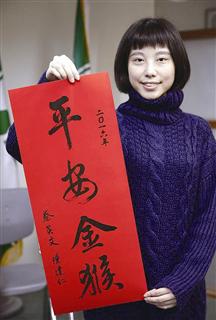 新时社网2月3日讯 据台湾联合新闻网2日报道 民进党媒体创意中心主任李厚庆2日指出,党中央推出由蔡英文、陈建仁落款的平安金猴春联,取其闽南语谐音平安真好。据了解,这幅字由美女书法家林佳颖题写。