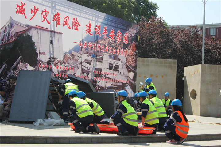 新时社5月17日讯:今年5月12日是我国第八个防灾减灾日,为了更好的做好防灾减灾的宣传工作,提高社区居民的防灾减灾及防范自救知识和救助能力,保障民众的生命和财产安全,朝阳区小关街道办事处根据区委、区政府和减灾委的工作要求,今日在小关奥林匹克文化广场展开了“防震减灾应急演练”,演练由小关街道武装部长王志宏宣布开始!