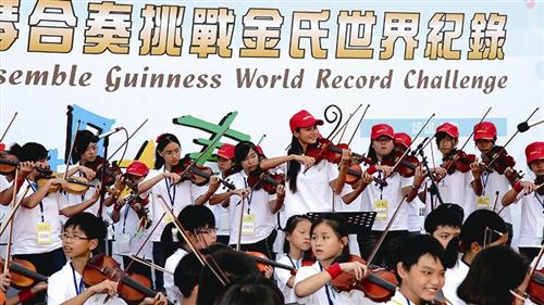 ▲彰化县府策划小提大奏以4645名学生合奏小提琴5分钟,破吉尼斯世界纪录