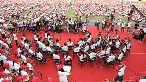 彰化县府策划小提大奏以4645名学生合奏小提琴5分钟,破吉尼斯世界纪录。台湾联合报系资料图