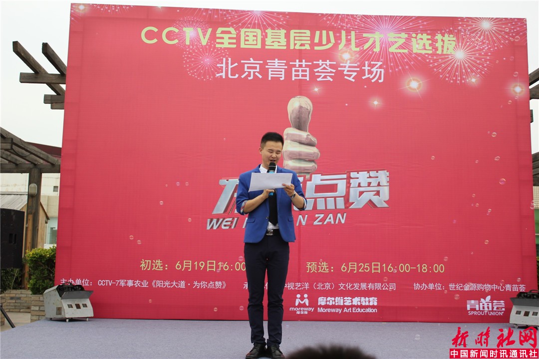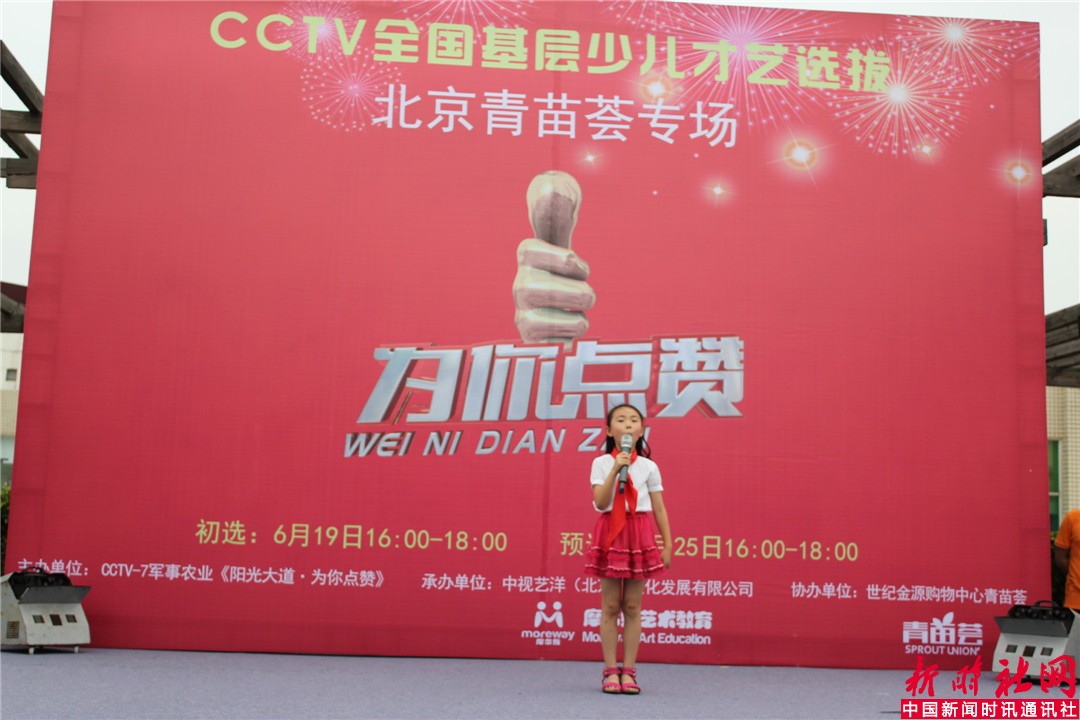 本社特约记者宋洁6月19日报道:“CCTV全国基层少儿才艺选拔初选赛于今日下午在世纪金源青苗荟广场举行,本次CCTV全国基层少儿才艺选拔活动由CCTV-7《阳光大道·为你点赞》栏目主办,中视艺洋(北京)文化发展有限公司承办,世纪金源购物中心青苗荟协办。选拔活动为全国基层少儿,其意义在于传承弘扬民族传统文化艺术,关注基层少儿文化建设,提高基层少儿基本才艺素质,使参赛儿童的综合能力得以更好的发挥。