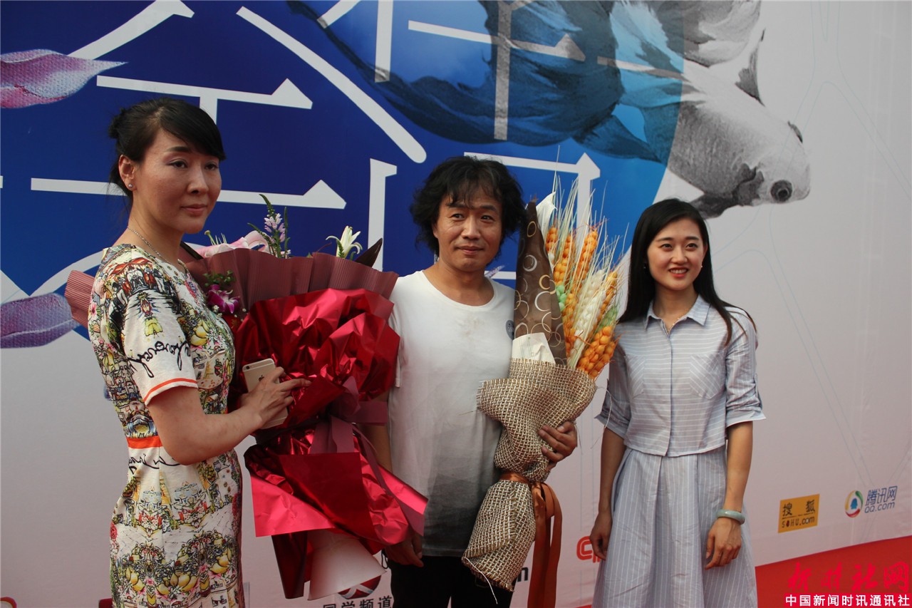 当策展人杜海义宣布剪彩仪式开始,军委参谋部干部处处长王月叙、泓光影业董事长许向泓、央视七套处长谭占军、策展人媒体人杜海义、民族证券副总裁胡八斤、中国文化艺术产业联盟主席马良、武警黄金政委胡相和等上台剪彩,音乐伴随将开幕式推向了高潮!