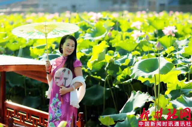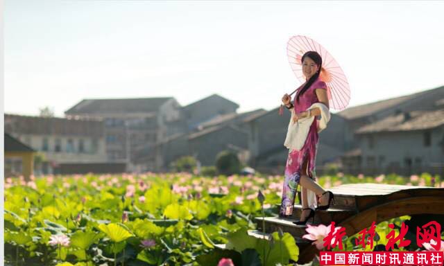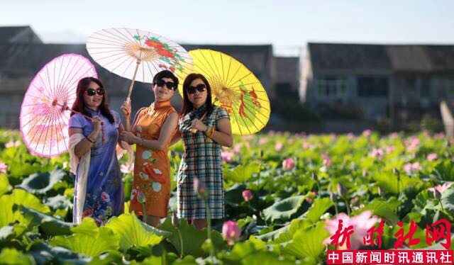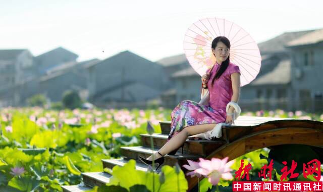 竹篱笆、木质栈道、小桥、游船等,成为游客拍照的热门地。另外,村里还准备了各式旗袍、民国服等服装出租,配以油纸伞、扇子等道具,身着独具特殊的旗袍,手撑一把油纸伞在荷花中穿行,仿佛穿越一般。