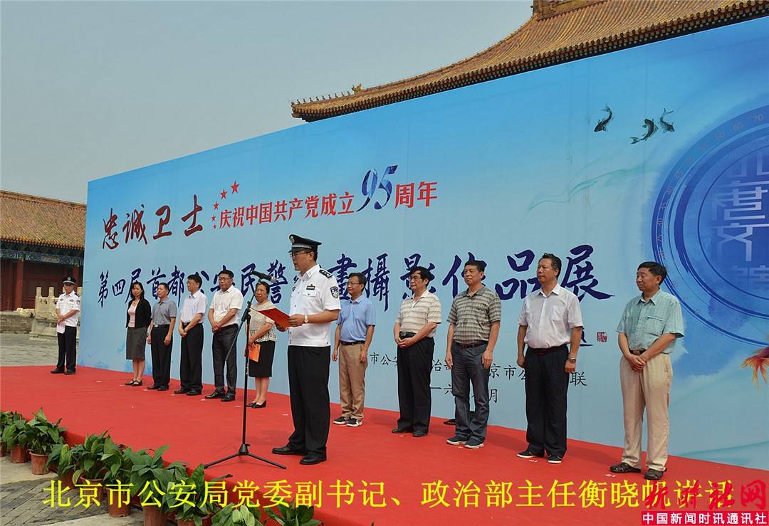 新时社特约记者宋洁报道:在纪念中国共产党成立95周年、中国工农红军长征胜利80周年之际,为了表达首都公安民警对党、对祖国、对人民的赤子之心,由北京市公安局政治部、北京市公安文联主办的以“忠诚卫士”为主题的首都公安民警第四届书画摄影作品展8月11日在北京人民劳动文化宫隆重开幕!
