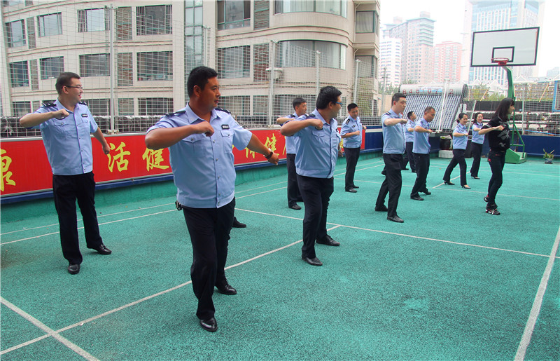 为了加强派出所警营文化建设,培养民警积极、阳光、健康的生活态度,增强队伍凝聚力和向心力,缓解民警工作压力,加强身体锻炼,强健体魄,更好地完成辖区治安管理防范任务。白山路派出所领导高度重视,根据派出所民警的特点,开展了早会后10分钟韵律操活动,发动和引导积极参加文化体育运动,增进了警心凝聚力。