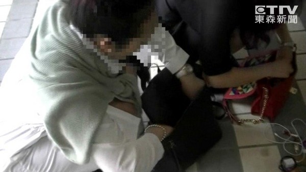 图为台北市调处侦办跨国卖淫案,2015年10月29日约谈相关女子到案说明,应讯结束,每个人都以衣物遮掩。
