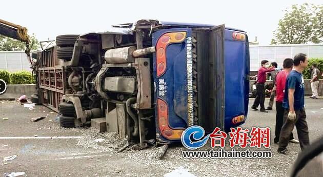 新时社网4月26日讯昨天下午1点20分左右,一辆载有江苏旅游团的游览车行驶至台湾中山高速公路(以下简称中山高)苗栗头屋北上129.3公里路段时,疑似超车失控与一辆砂石车碰撞后翻覆。