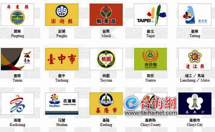 ▲台湾部分县市旗帜(图片来源:台湾联合新闻网)