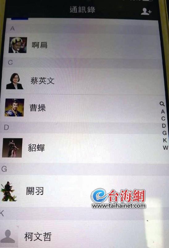 据今日新闻网5月31日台中市保安大队日前在街头查获一名林姓诈骗车手(负责取款者),赫然在其手机通讯软件中,发现蔡英文、柯文哲、关羽等古今中外人名,原来是车手们盗用这些姓名作为昵称,意图蒙混让警方无法追查,不过这种天真的手法最后还是遭到警方一举识破。