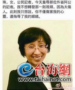 新时社网6月14日讯综合台湾媒体13日报道打着公民记者身份的高雄女子洪素珠,近日因辱骂荣民伯伯引发各界挞伐,虽然她过去的报道在PeoPo公民新闻网已被下架,但仍有网友将她过去疯狂作案的影片备份,其中一段是质疑陆籍配偶来台湾是做什么,没想到反而激怒对方被呛爆,只见洪只能老调重弹,大吼中国人少来台湾。