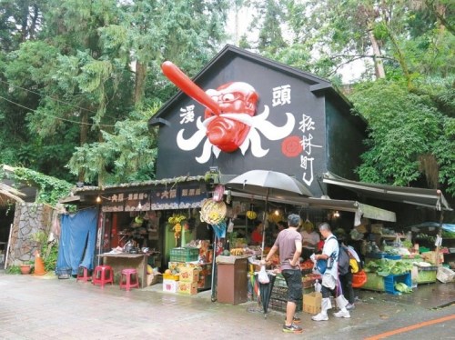 到溪头已经接近夜晚,当地住宿目前最夯的是妖怪村主题饭店,饭店外的日式商店街结合各项妖怪主题活动、餐厅与茶坊,假日还有街头艺人表演,早成为年轻人最常流连的去处,夜晚更是灯火通明。