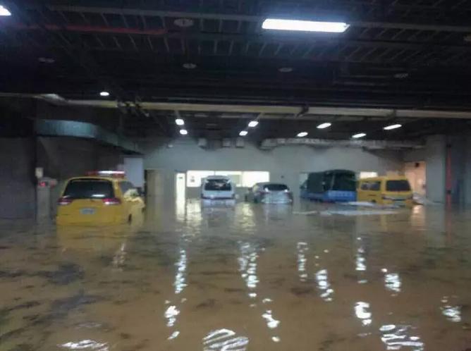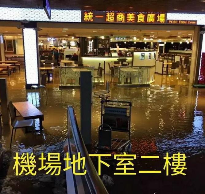有刚好前往机场的网友在网络上分享照片指出,原本以为在前往机场路上碰到淹水还好,没想到进了地下室才发现淹水的高度已经到了一整个轮胎高,不少车都泡在水里。