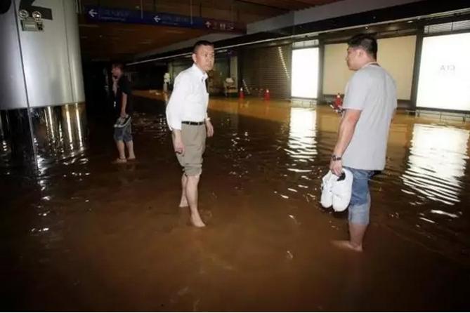 另外,桃机二航的B1几乎也成了水乡,不管是接机送机的旅客还是现场的工作人员或空服员,都必须涉水而过,鞋子都泡在黄水里。