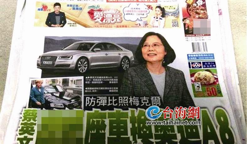 蔡英文就职台湾地区领导人后,所用的专车为奥迪A8L款。