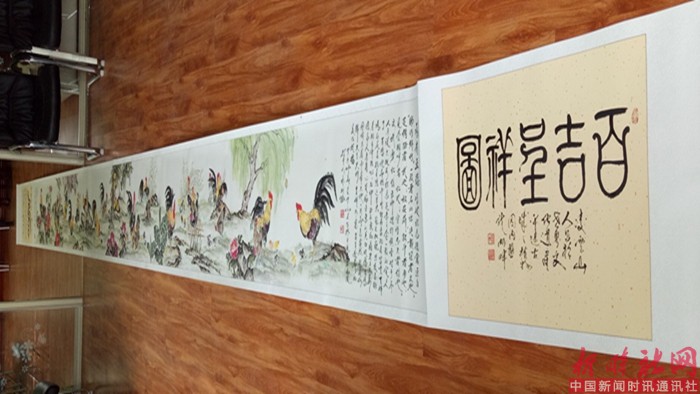 昨天出去锻炼在白石画院门口遇到赵贵明院长,进到他的办公室一眼看见地上已经完成的十米长卷(百吉呈祥图)诗中有画画中有诗,两者水乳交融,妙然天成。