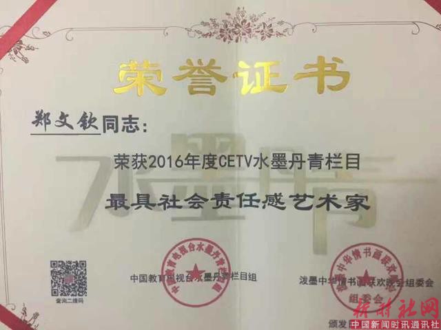 郑文钦先生德艺双馨,不仅担任中国教育电视台水墨丹青书画院副院长、中国榜书艺术研究院会员、众通社艺术研究院院士。同时还担任中国海峡两岸青少年儿童食品安全中心副秘书长、广东省河源市茶行业协会副会长、河源市仁爱天下志愿者协会副会长、广东省狮子会建爱德商服务队纠察长、河源市中小型企业商会理事、福建东方楚帅慈善基金会理事。 他热心社会公益事业,曾被评为中国教育台水墨丹青书画院最具责任感的艺术家 。