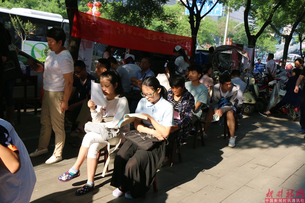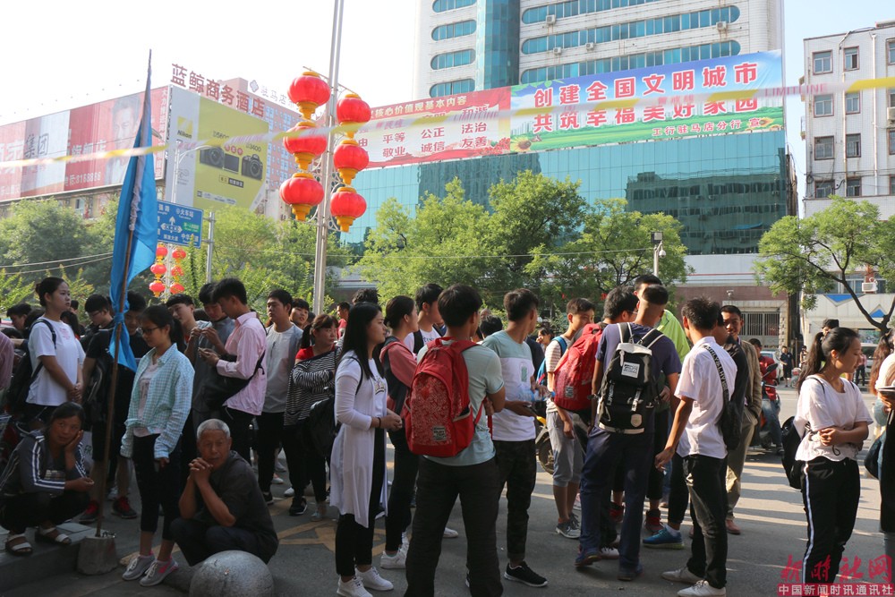 驻马店市有4万多考生参考,今天7点多,爸妈顶着烈日陪着学子们奔赴高考的战场。各考点学校门口两侧警戒线外,满满的都是考生在等待8点20分的到来。