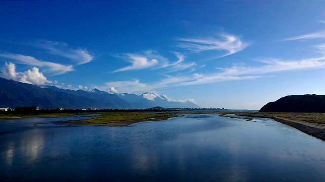 随着强烈台风尼伯特持续逼近台湾中,位于台湾东部的花莲溪出海口出现卷云,呈现风暴前的宁静。(图片来源:台湾中时电子报)