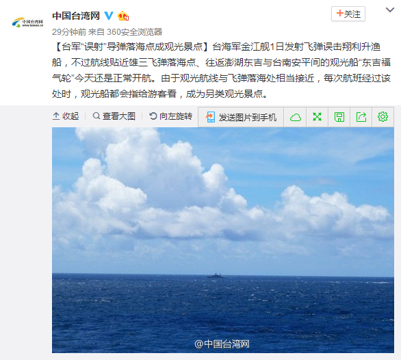台军“误射”导弹落海点竟成了观光景点 网友讽:想钱想疯了