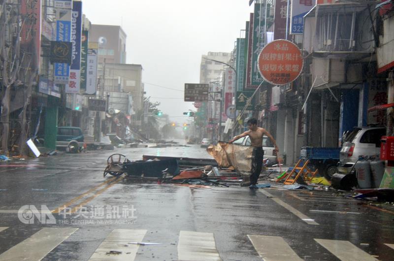尼伯特登陆台东,市区满目疮痍。(图片来源:台湾中央社)