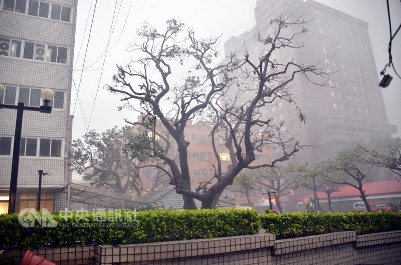 台东地区从今天凌晨2时起开始狂风暴雨,民宅门窗破裂,台东果菜市场屋顶被掀,树木倒塌。台东县政府前列管的百年老榕树,原本枝叶茂盛,一觉醒来变成光秃秃,市区满目疮痍。