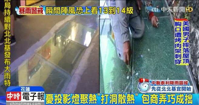 承包商表示是因在室内的玻璃底下装有投影灯,担心灯照太久会过热,因此在玻璃的四个角落打洞散热,没想到弄巧成拙才会造成玻璃碎裂,一整排50个玻璃走道竟然碎了16个,承包商只得自己埋单维修。