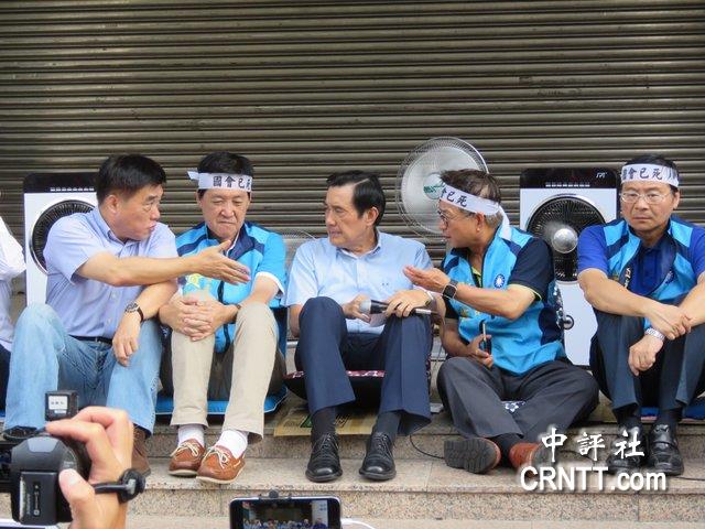 台立法院第三次临时会院会31日凌晨在混乱中三读通过前瞻基础建设计划第1期特别预算案。据香港中评社31日报道,台湾地区前领导人马英九今早赴立法院楼外,探视声援三位禁食抗议的国民党立委赖士葆、费鸿泰、曾铭宗。