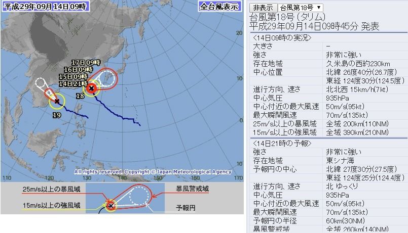 日本方面发布的泰利台风情况报告