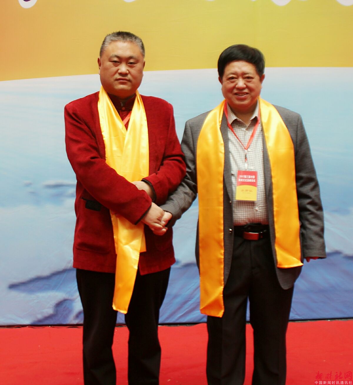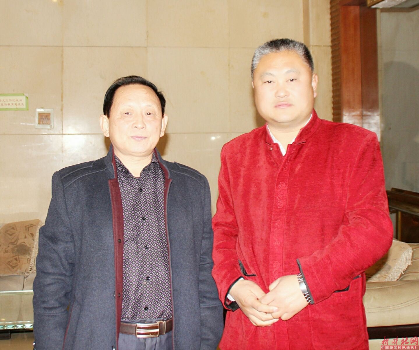 池建周与安阳市殷商文化研究会副会长、书画家王志成。