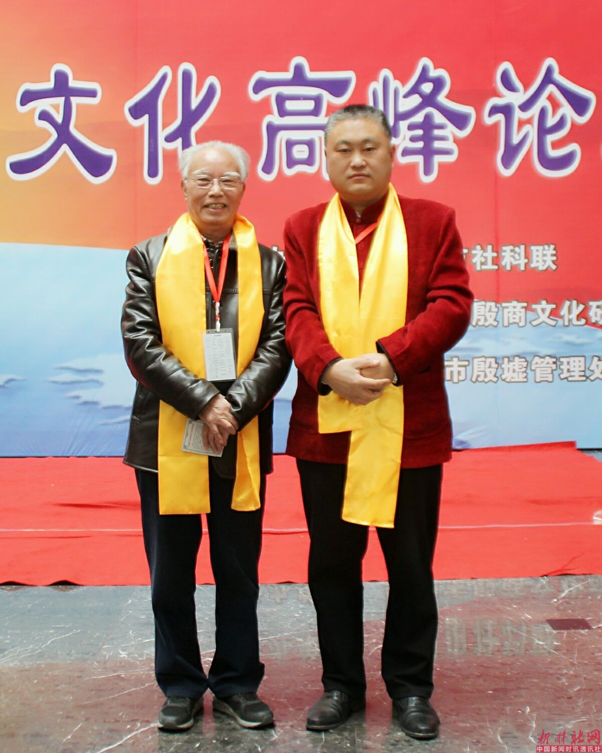 池建周与安阳市殷商文化研究会会长杨得志、甲骨文专家罗琳等。