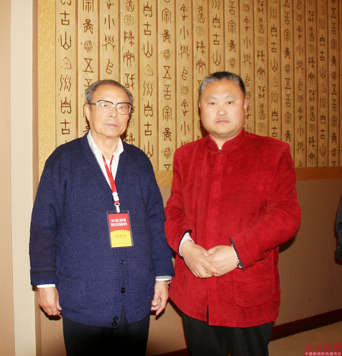 池建周与中国甲骨文书法艺术研究会常务副会长兼秘书长刘继贤。