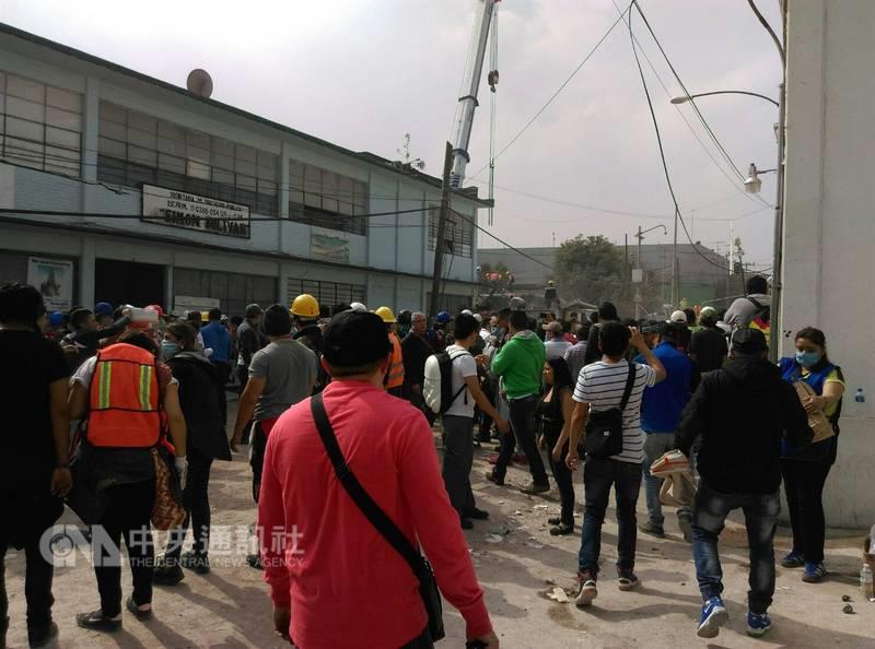 墨西哥发生7.1级地震,现场重型机械进驻救灾。(图片来源:台湾中央社)