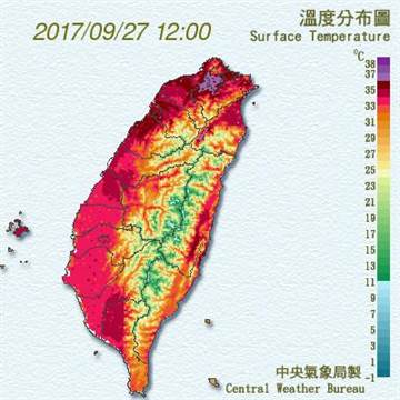 据台湾中时电子报9月27日报道,根据台气象局公布的数据显示,台北地区(台北气象站)今日的温度已达38度,在中午12时38分时达38.4度,13时18分的温度更一度高达38.6度,成为今年以来全台最高温。