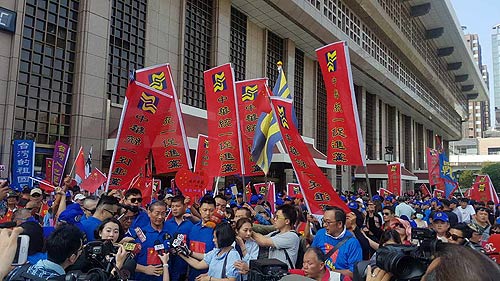1日,台湾统派团体中华统一促进党举办庆祝光辉十月游行,《环球时报》记者获悉,下午2时许,游行队伍从台北车站附近出发,参与人数估计达到2000人左右。