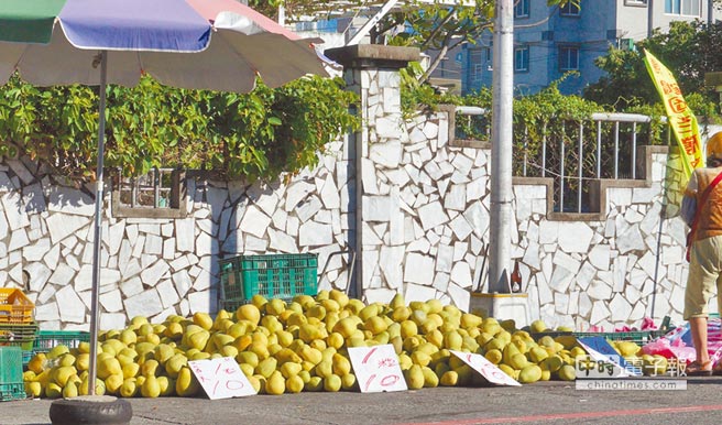 花莲市出现一颗5元(新台币,下同)、12颗50元文旦柚的流血价。(图片来源:台湾《中时电子报》)