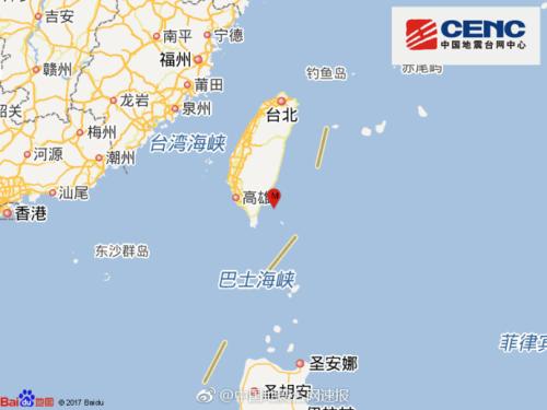 台湾台东县海域发生4.0级地震 震源深度7千米