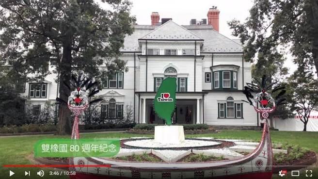 据台湾中时电子报10月4日报道,台当局驻美代表处4月拿掉双橡园内的青天白日造景,改装置绿色的台湾立牌。对此,立法院国民党团曾出面痛批蔡当局搞意识形态,并将此形容为双橡园变色。台涉外部门当时回应声称,国徽的造型与结构皆无变更。不过,在涉外部门今天释出的活力台湾,跃升国际影片中,绿色台湾造景被立在双橡园中央,并在前面放置一艘达悟族(台少数民族)的拼板舟,明显是在强调所谓的台湾主体意识。