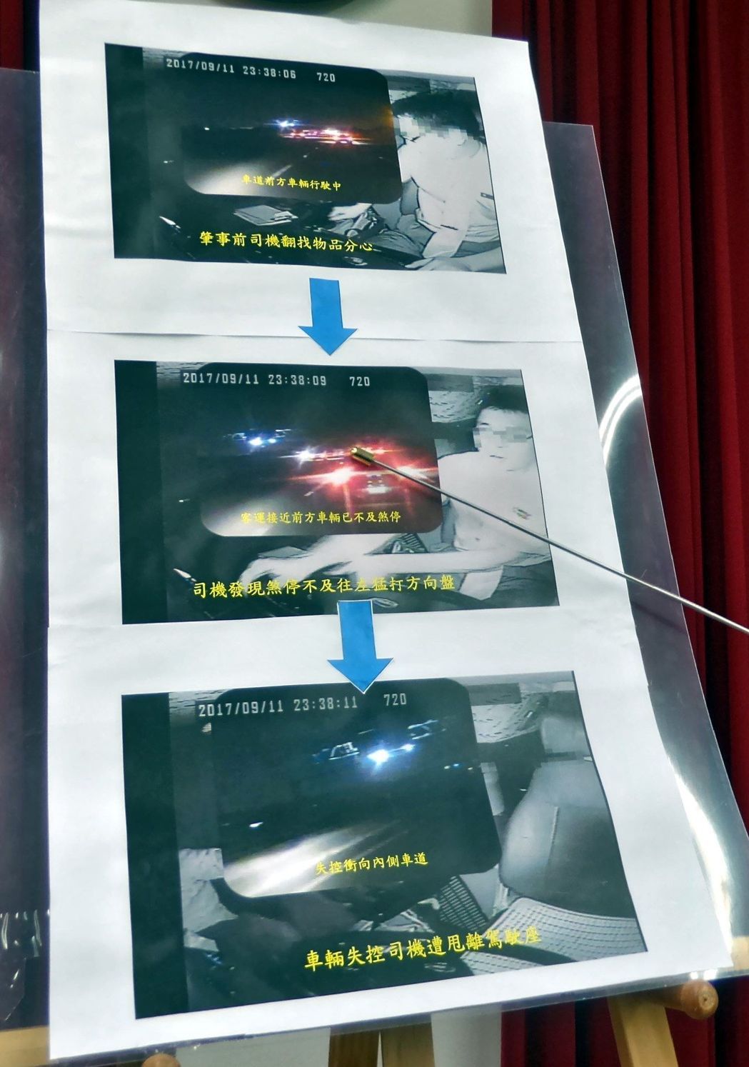 司机出事前曾想低头找湿纸巾擦汗(图片来源:联合新闻网)