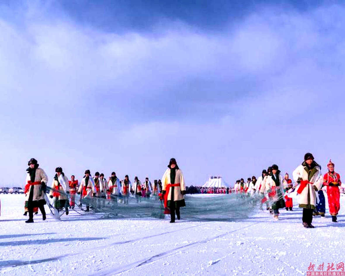 1月12日,在冰雪严寒的新疆博斯腾湖冰面上,举行了盛大的博斯腾湖冬捕仪式。冬捕仪式后一群身着翻毛大衣和长筒水靴的渔家壮汉们,在绞网机的牵引下,将大网缓缓拉出,活蹦乱跳的大鱼争先恐后跳上了冰面,博斯腾湖冬季巨网捕鱼第一网就捕捞出了2.5吨多的鲜鱼。