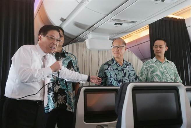 李大维与两特勤人员穿着夏威夷特色衬衫亮相(图片来源:中央社)