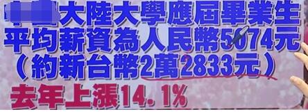 当蔡当局为涨薪至22K而沾沾自喜,觉得已是大发慈悲时,大陆一般大学的应届毕业生起薪就是近2.3万了!