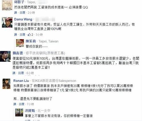 如果大家没有忘记的话,8月份的时候,台湾有关部门已经把民众的基本工资从月薪2万1009元、时薪133元,调涨至2万2000元、时薪140元了,该措施将于明年元旦正式执行。当时除了劳方的不满外,资方也是怨声载道,但没想到这次竟还会有资方提议涨薪到3万。