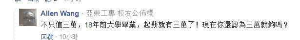 更有人表示3万根本不够,18年前(台湾)大学毕业生起薪就有3万了