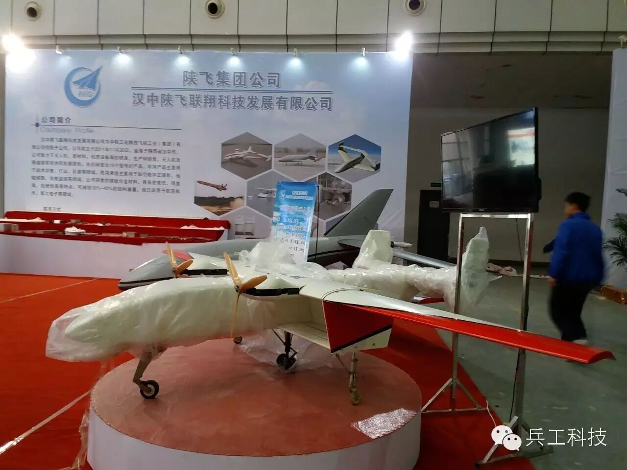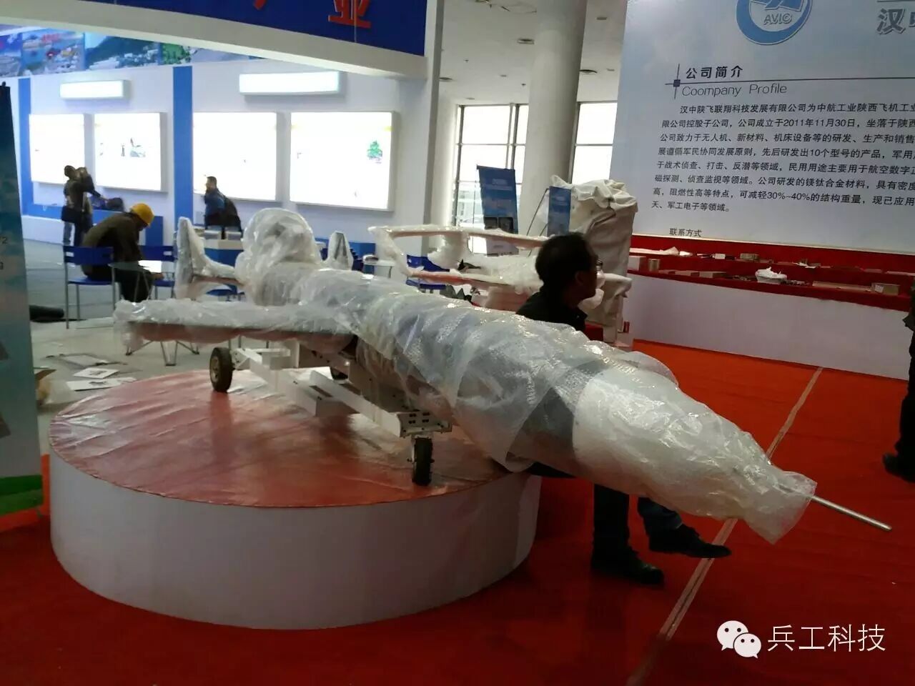 特别引人关注的是,在陕飞集团汉中陕飞联翔科技发展有限公司展台上,展出了一款国产新型高空高速靶机。从展板资料来看,该靶机机长为3米,翼展为1.7米,最大起飞重量为150千克,最大飞行速度可达0.72马赫,巡航时间大于1小时,巡航高度为6千米。由于尚处于布展状态,该靶机还未露出真面目,被严实的包裹着。