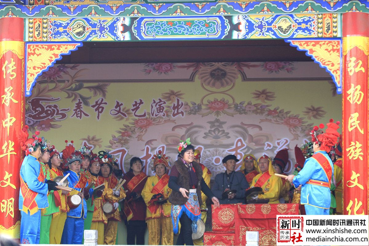 又逢新佳节,在每年的正月里,当地为了宏扬民族传统文化及传承非遗文化,政府都要组织各乡镇的民间老艺人对传统文化的演艺,一方面通过演出让这种传统一代代传承下去,另一方面也给群众带来新春的节日气氛。“汾阳地秧歌”历史久远,具有浓郁的乡土气息,对于研究黄河流域农耕文化,探究当地汉族劳动敏锐娱神崇祀等民俗活动有着重要的价值。作为有鲜明地方特色的汉族民间舞蹈,汾阳地秧歌载入《中国民间舞蹈集成》。今年的秧歌酹演主要集中为文场表演,由于文场以唱为主,不需要多大的场地,在舞台上表演更能让台下的观众看的清,听的真,并且利用舞台设备,将唱词也显示在了LED屏上,让一些听不懂方言的也能看得懂了。同时演艺的内容也是新式多样,有古典曲目,还有现代曲目,所以就出现了穿传统服饰和现代服饰的类型,汾阳的这种磕板秧歌以前由于妇女地位的限制,多为男扮女装,现在为了表现古老的特色,仍有采用这种方式的表演,为节目增加特珠效果。