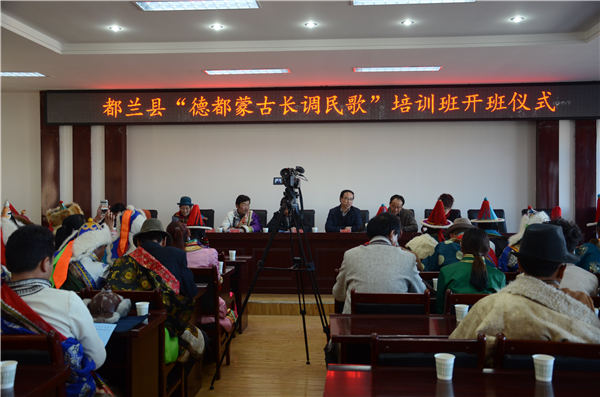 ????????12月2日至4日,都兰县举办了首届德都蒙古长调民歌培训班,培训班邀请了州音乐舞蹈协会负责人、德都蒙古长调省级非物质文化遗产传承人金花和国伟授课。来自巴隆乡、香加乡、宗加镇的50余名德都蒙古长调爱好者参加了此次培训。