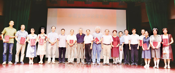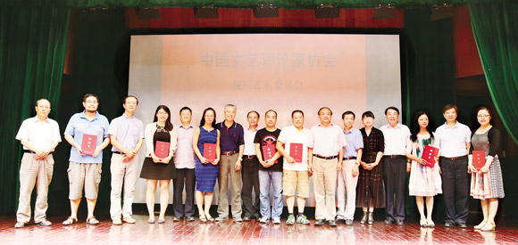 中国文艺评论家协会主席团成员为各个艺委会代表颁发聘书。